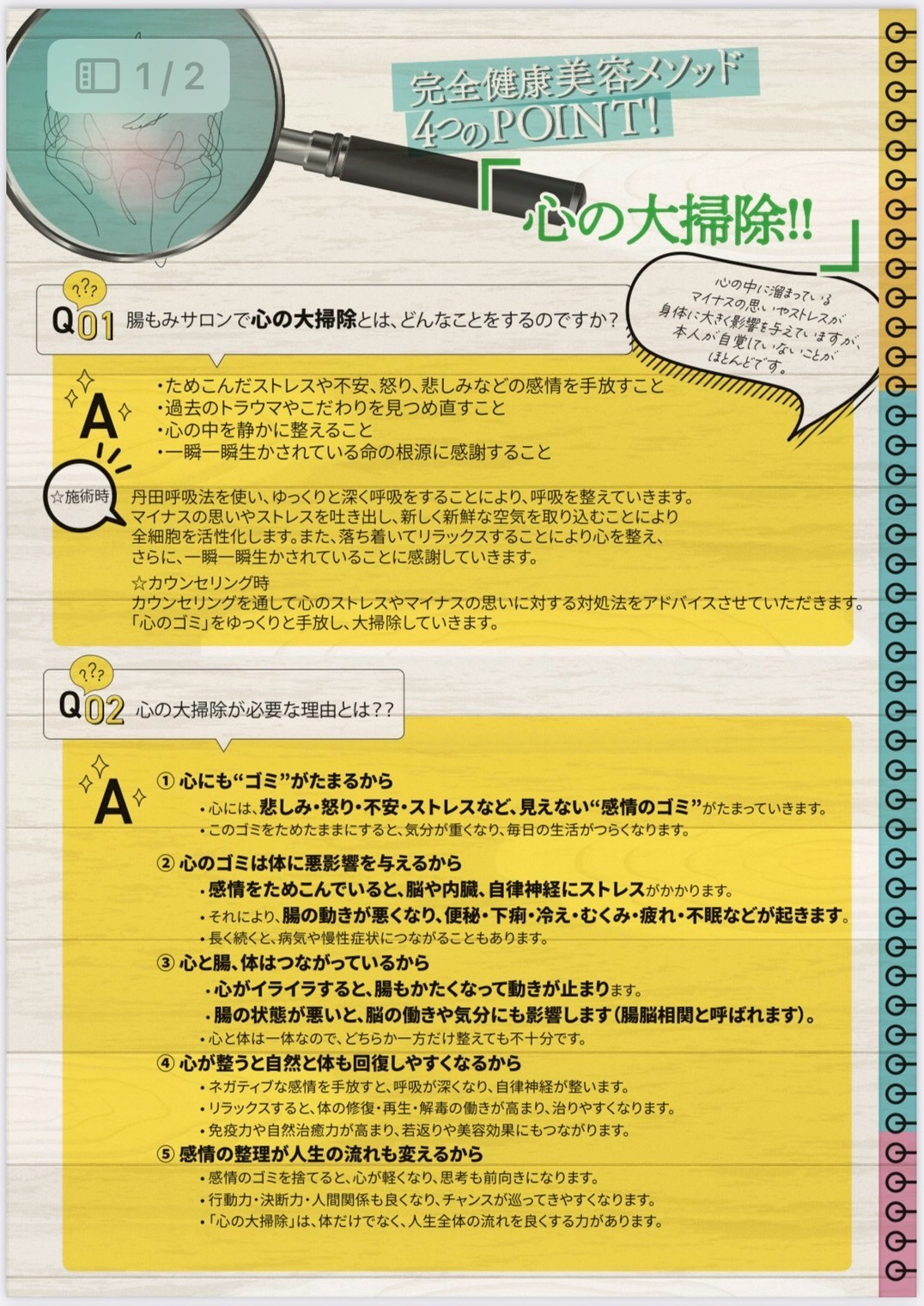 ①プロ腸もみ➕デトックス②食事デトックス③メンタルデトックスを繰り返し大量蓄積毒素を心体外に継続排出し大掃除し真から活性化することで、体の中から健康に美しく若々しくなります。